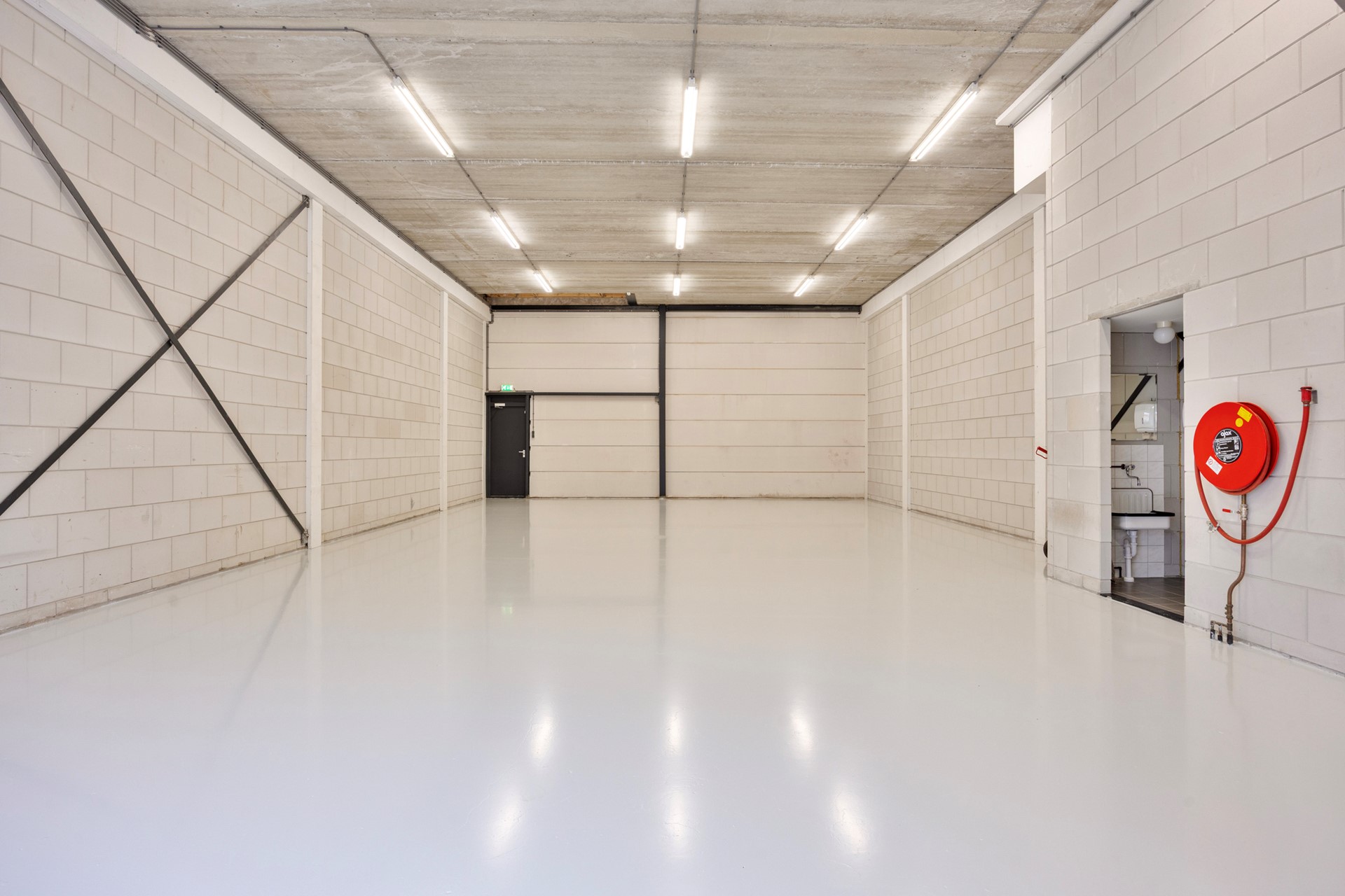 De bedrijfsruimte wordt in de huidige staat opgeleverd en verhuurd en is onder andere voorzien van: