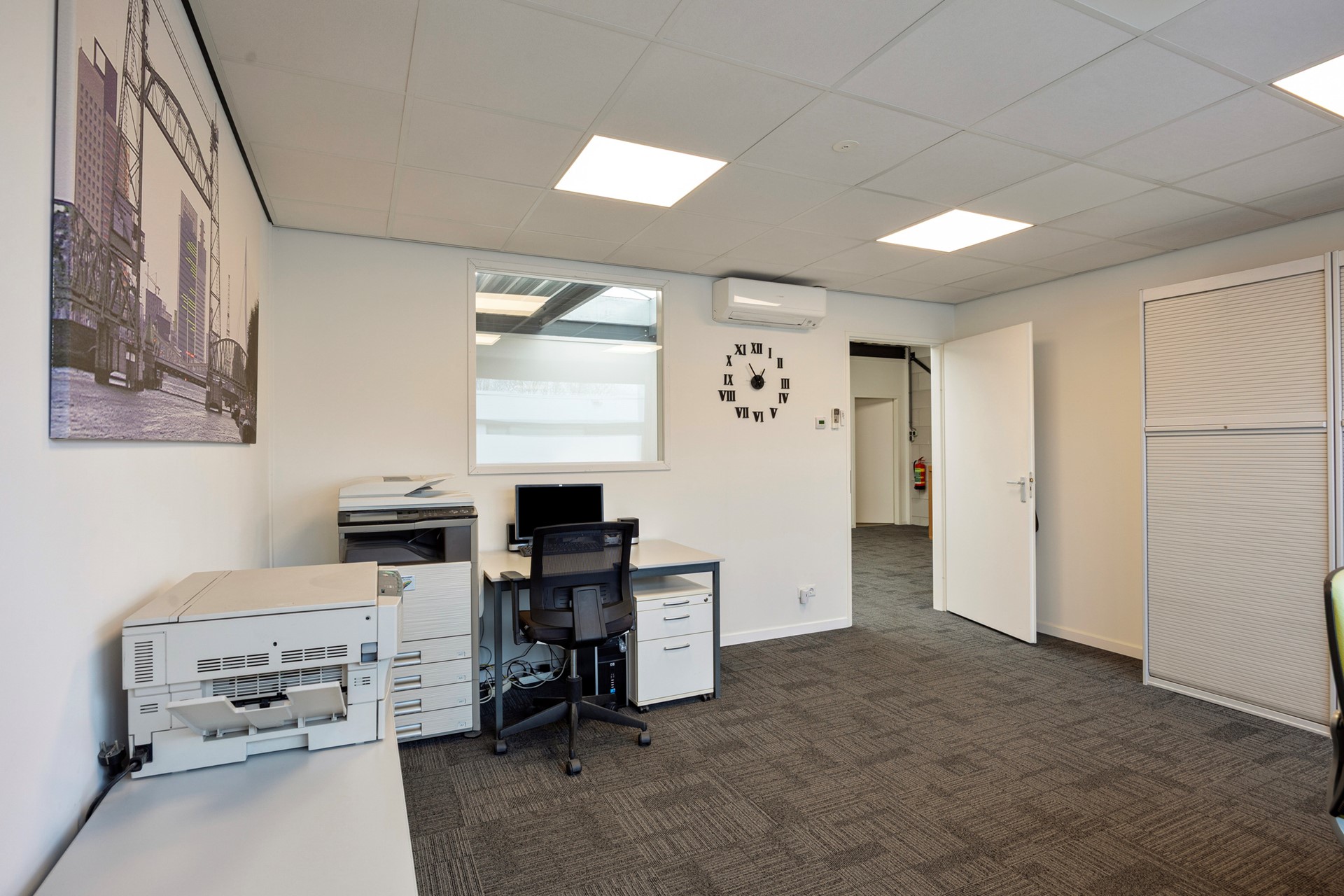 De kantoorruimte wordt in de huidige staat opgeleverd en verhuurd en is onder andere voorzien van: